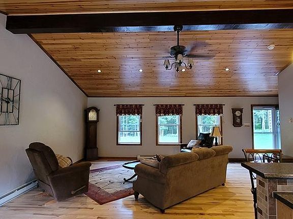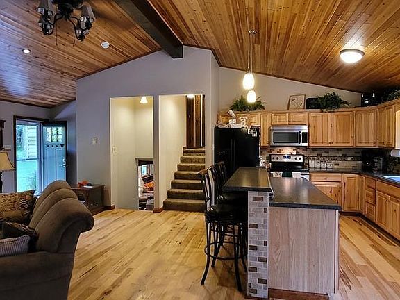 This beautiful, completely custom built multilevel boasts an open floor plan, 3-4 bedrooms and large family room. Enter the front door to a beautifully open living room and kitchen offer warm hardwoods that welcome you in as the vaulted ceiling expands the space. Enjoy watching wildlife out the large front windows or off the back deck. Each of the 3 bedrooms have solid wood doors, closet doors that top high quality carpet. The master bedroom features a convenient walk in closet and master bath with walk in shower and hand crafted vanity. The lower level family room is trimmed in beautiful wainscoting over carpet with an abundance of natural light from the windows A convenient 1/2 bath, workshop and laundry room. Oversized 2 car garage, the privacy is unmatched on the wooded 10.6 Acre lot! Private Remarks: Some notice, must be confirmed. $400/year Homeowner's Association fee is for road maintenance paid to Hickory Ridge Estates.