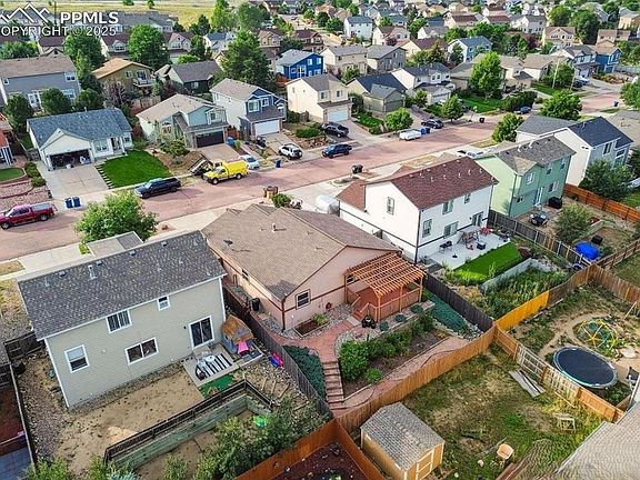 Charming 3-Bedroom, 2-Bath Rancher featuring a bright open living area and an updated kitchen and bathrooms with modern finishes. Vaulted ceilings and abundance of natural light. The primary suite includes a private en-suite bathroom with an incredible updated spa-like shower. An owned RO water softener system adds extra convenience. Outside, enjoy a beautiful patio and pergola surrounded by lush zero landscaping, perfect for relaxing or entertaining. Comes with a 5YR Roof Certificate, Newer AC and newer windows. Oversized attached garage and plenty of off-street parking. No HOA!! Located within walking distance to the community park and local shopping, this home offers the ideal blend of comfort, charm, and convenience. It's also just 10mins from Peterson AFB. This would make the perfect First Home or Rental property! Move-in ready and full of character!