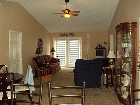 DRASTIC REDUCTION. 2 bd, 2 ba LIKE NEW! Kitchen w/ breakfast bar opens to the Great room and dining room with cathedral ceilings. Ceramic tile floors, garden tub, Laundry Room. NEW carpet, paint throughout including Kilz, plantation blinds and appliances. End unit on a cul-de-sac with a single CARPORT. Screened porch with fan. Privacy fence around part of yard - easy to enlarge. Sunroom with walk-in closet could be a 3rd bedroom. You would need a double door from den.