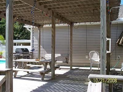 Well loved custom home on sprawling 1 acre. Contractor's personal home features many quality features & unseen upgrades. Brick walkway & inviting front porch has plenty of room for your furniture. Comfortable living room has large brick fireplace (electric or wood), an alcove sitting area & built-in bookcases and cabinet for tv & electronics. Large kitchen boasts lots of pretty hickory cabinets & counterspace, huge center island workspace w/storage, walk-in pantry closet, fully equipped with Professional-series stainless steel appliances. Dining area off the kitchen is long enough for a 10-seat table. Home is handicap accessible & has 5' wide hallway with big storage closet. Spacious Master suite w/his & hers walk-in closets, dressing area w/double vanities & a large sit-down shower, plus a bonus room off the master (currently used as an office). Splash around in the sparkling in-ground pool & enjoy get togethers on the large covered deck/pergola. Pool is nicely cool-decked. Full double-car garage in rear of home. House situated well off the roadway for privacy. A long driveway brings you up to house w/extra parking & circular driveway in front. Neat 20x24 workshop building with covered parking. Also a 20x20 storage building with heavy-duty shelving to meet your needs. The yard is enormous and has a chain link fenced back yard with 2 sets of drive-thru gates. It is wonderfully kept with a healthy lawn and many stately oaks. Home is on public water & there is a well in the yard for the sprinkler system, pool & outside use. A relaxing and elegant home with a country setting. Owner has built in many extras such as arched doorways and airy 9' high ceilings within the home, installed hurricane film on the windows for protection, has the house wired for a back-up generator in the event of hurricane or power outage, installed larger 2x6 attic rafters & extra insulation, put in floor decking & lighting in the tall atti