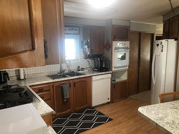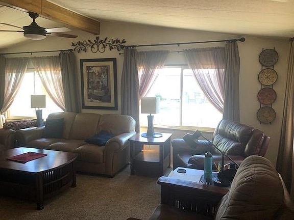 Beautiful FURNISHED 2 Bedroom 2 (3/4 Bath) Doublewide, TUFF Workshop w/AC Plus Storage Shed ALL on a Completely Fenced Oversized Lot & 1/2!! DOG Friendly!! New $10K Roof w/2 skylites, Upgraded Windows, Upgraded Plumbing, Central A/C, Heat & Evap. Cooling. Updated Baths w/Walk-in Showers & Spacious Modern Kitchen. Some Wood Laminate Floors. Carpet in Living Room. Indoor Laundry. Outside access to Hobby/Guest Room area. Gazebo & Fire Pit. Fruit Bearing Trees. Just steps from Community Pool w/Activities.