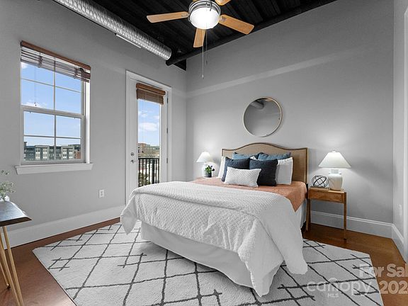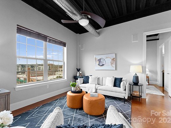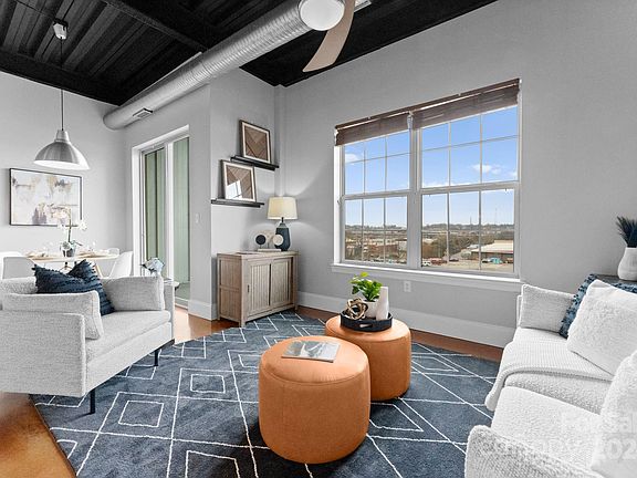 NODA! Enjoy easy and carefree living in a beautiful contemporary condo located in Charlotte's Arts District. This beauty features 2 bedrooms and 2 full baths, updated kitchen with stainless steel appliances, granite countertops, tile backsplash and storage galore! The primary bedroom has a generous walk-in closet and en-suite bath with walk in shower and granite counters. Entertain your guests at the large breakfast bar that opens to a spacious great room. 10ft ceilings and stained concrete provide a modern feel and flow through to the covered balcony providing great views from the 4th floor. Enjoy evenings on the 5th floor community terrace or spend time hanging out at the dog friendly recreation area. Your unit will come with an assigned parking space. Traveling around Charlotte could not be more convenient as you are in walking distance to the light rail and only 1 mile from Uptown! Enjoy shopping, dining and some of the best breweries around!!