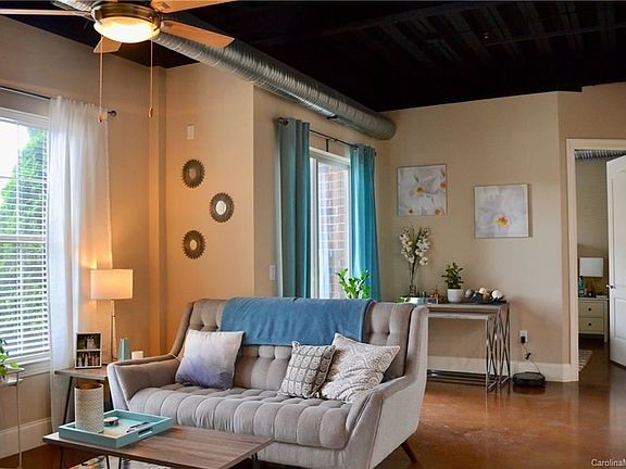 Corner unit now available in the desirable 28th Row community! This well maintained unit features: an industrial like interior, 12 foot ceilings, exposed supply vents, bistro sized patio, and is on the ground level. Just a couple blocks from light rail, restaurants and shops. This commuity is right in the middle of Charlotte's best. Don't forget to check out the terrace, schedule your tour today!