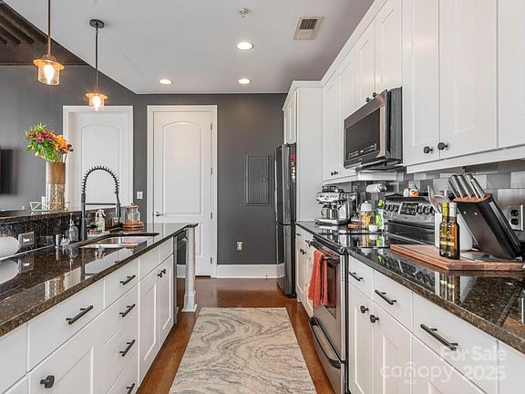 Don't miss out on this immaculate top floor condo in Villa Heights. Minutes to everything that makes CLT GREAT- Cordelia Park/XCLT, Optimist Hall, NoDa, Plaza Midwood, Light Rail, Uptown and so much more that this location offers! Combining modern comforts and a chic industrial vibe with soaring ceilings and exposed ductwork. There are oversized windows to ensure plenty of natural light. One assigned parking spot convenient to the lobby and plenty of unassigned spots! This open concept living and dining space has access to the balcony where you can take in the beautiful views of the city. A well-equipped kitchen features granite countertops, soft close cabinetry, updated black SS appliances including a 39 db dishwasher, microwave, and quad zone fridge, a breakfast bar and plenty of storage to make cooking a joy. Features 2 balconies, 2 large BR's with custom WIC, advanced wired surround sound, August smart door, Nest thermostat, upgraded fans w/remotes, and remodeled bathrooms! Trash chute on each floor for convenient trash removal. Cats & dogs allowed. Two pet max. Additional Storage closet in hallway next to the unit. No phone calls or emails. Communication through Zillow only. Owner pays for water/HOA fee. Tenant pays electric and internet/cable. Deposit equal to one month's rent required at lease signing. 2 pet max.