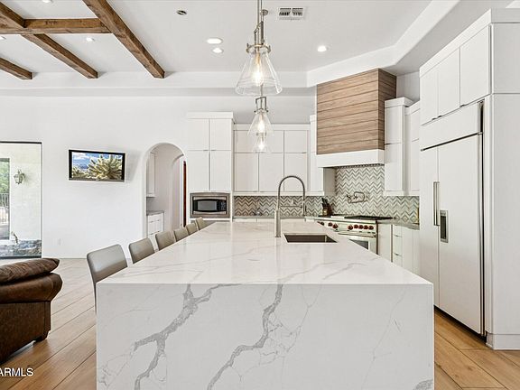 Built to inspire. Designed to stand apart. Perched high above the city lights on the hillside of the scenic Thunderbird Conservation Park, this remarkable 1.3-acre gated estate redefines what it means to come home. From the moment you arrive, you're greeted by breathtaking mountain views, timeless architecture, and an undeniable sense of privacy and prestige. Step inside and every inch feels intentional. Grand spaces, designer finishes, and natural light streaming through walls of glass connect you with panoramic views in every direction. When the sun dips below the horizon, the real magic begins. The romantic primary suite becomes your front-row seat to endless Sonoran sunsets, best enjoyed from your private veranda overlooking the serene valley below. Outside, the resort-style backyard rivals any five-star retreat with a sparkling pool, putting green, outdoor kitchen, fire pit, and inviting spaces perfectly designed for unforgettable gatherings with family and friends. If you're up for some adventure, explore over 1,100 acres of nature preserve at your doorstep with miles of hiking trails. With plenty of room to roam and spanning over 8,900 sq ft of inspired living, this estate delivers it all: a chef's dream kitchen, a lower-level living area perfect for guests or multigenerational living, a private theatre, fitness room, separate casita, and not one but two RV garage spaces, with parking for up to 14 cars for the ultimate in flexibility and freedom. This is more than a home, it's a statement. You've arrived. Come experience what elevated Sonoran Desert living truly looks like, and discover what sets this one of a kind home apart from the rest.
