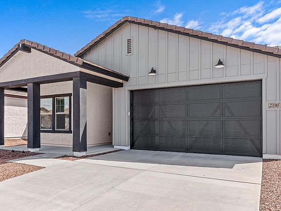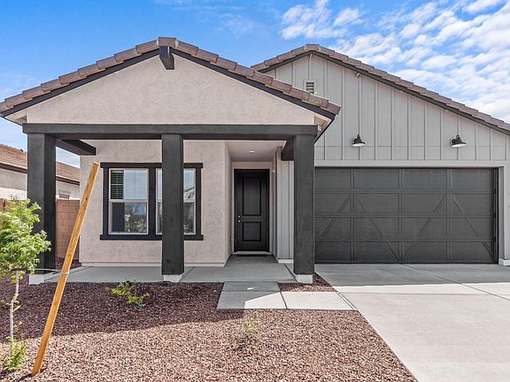 ~Special CASH Pricing Available $344,990~ Move-in Ready! Monroe Ranch is a vibrant community with easy access to I-10 and the charming town of Buckeye. This single-level Clyde plan offers 3 bedrooms and 2 bathrooms, beautifully designed with our Loft Inspired 'Looks' interior selections. The kitchen features white cabinets with 42'' uppers, Meridian Grey quartz countertops, and a spacious island perfect for meal prep or entertaining. The open great room, dining area, and adjacent patio create an ideal space for gatherings. The split floor plan provides extra privacy for the Primary Suite, featuring a large shower and walk-in closet. Plus, your refrigerator, faux wood blinds, and washer/dryer are included making move-in a breeze!