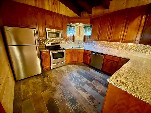 Beautifully remodeled home on nearly 9 acres m/l! From the new ceramic tile wood plank floors to the custom white pine ceilings this property this place has it all! Granite counter tops everywhere, 2 walk in tile showers, dual sided living room fire place, and much more. The brick slab foundation home features 2,090 heated sqft. With 3 bedrooms and 2 bathrooms. There are multiple storage buildings and an outdoor kitchen/ barbecue as well as a brick shop on concrete with electric. Nice barn for animals and or hay storage. Property is completely fenced and ready for cattle or horses, roof and water heater are 2 years old, and much more.