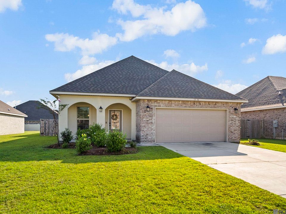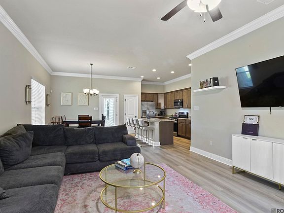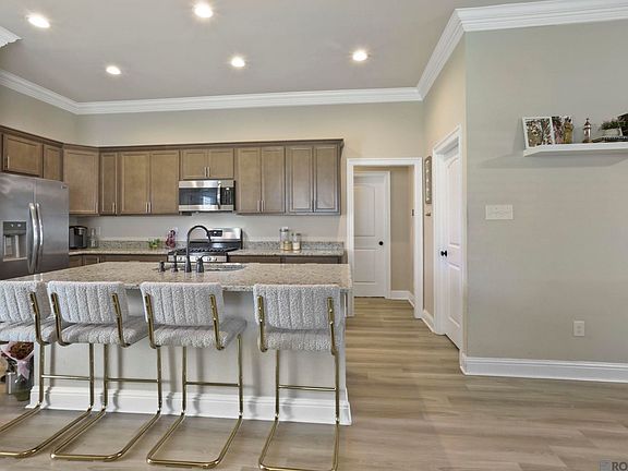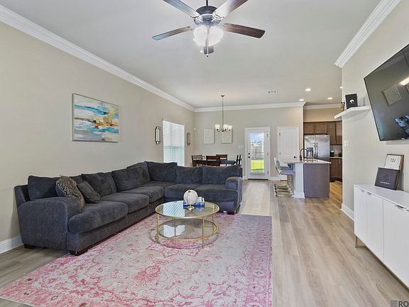 Well-maintained Fareham IV A in Nickens Lake with 3 bedrooms, 2 baths, and an open layout perfect for everyday living. Situated on a slightly larger lot than most new builds, this home features luxury vinyl plank flooring, granite counters, crown molding, recessed lighting, and blinds throughout. The kitchen offers a large island, undermount sink, and gas range. The primary suite includes a double vanity, garden tub, separate shower, and walk-in closet. Additional perks: covered front porch and rear patio, ceiling fans, Tuscan bronze fixtures, framed mirrors, and automatic garage door. Energy-efficient touches include a tankless water heater, low-E windows, and post-tension slab construction. Fully sodded and landscaped. Move-in ready today—no waiting on construction!