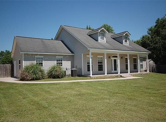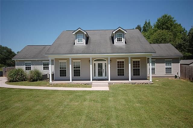 Country family living at it's best in this 5 bedroom Acadian home, on acre lot in Covington north of Abita. Beautiful stained & scored concrete floors downstairs, large formal dining room, spacious living room with corner fireplace, kitchen has granite counters & stainless steel appliances, gameroom with laminate floor, master down/4 bedrooms up, many recently painted, porches on front & rear, over-sized fenced yard with access for boats & trailers, low maintenance exterior, Flood Zone C, 1 yr Home Warranty