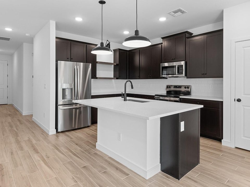 ~~~ Special CASH Pricing Available $349,990~~~ Welcome to the Clyde - a charming, single-story, 3-bedroom, 2-bathroom home in the brand-new Monroe Ranch community in Buckeye. Designed with beautiful Farmhouse interior finishes, this home offers warmth and style throughout. The kitchen is a standout, featuring 42'' dark stained cabinets with stylish floating shelves, black matte hardware, and stunning ice-white quartz countertops. The open-concept great room provides a perfect setting for gathering with family and friends, while the primary suite offers a peaceful retreat, complete with a spacious walk-in closet and a spa-inspired bath. Don't miss this opportunity to make this stunning farmhouse-style home yours!