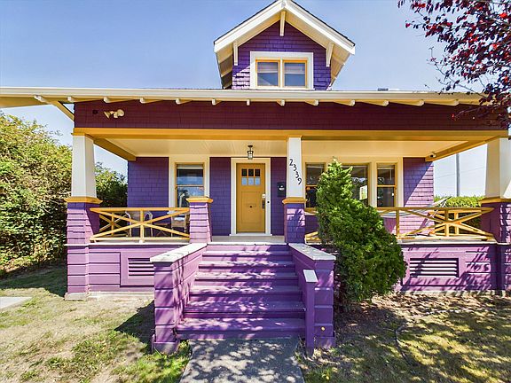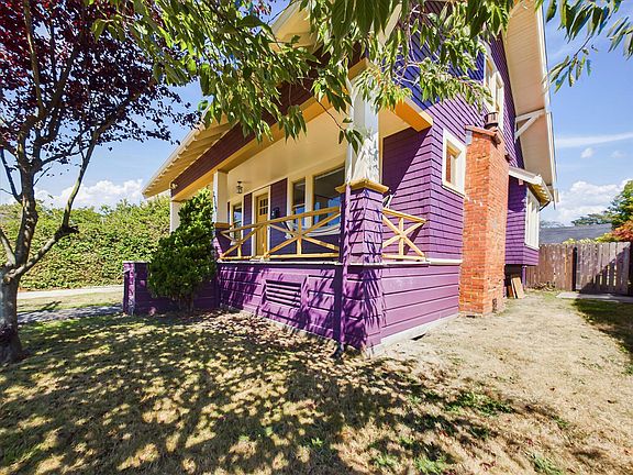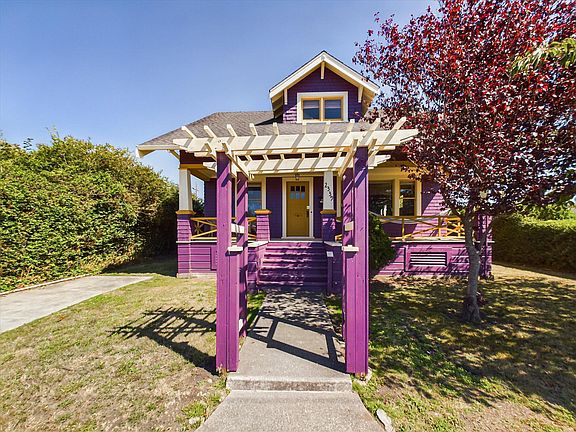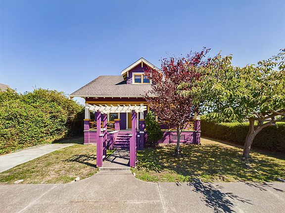 Colorful and newly painted, this formal craftsman-style bungalow in the heart of Eureka boasts an updated kitchen with all new Smeg appliances, an induction stove in the island, convection wall oven, and large pantry with window. Original built-ins provide a passthrough to the living room, adding extra character to the fireplace, sunny south facing windows, and roomy foyer with bookshelves. Two large bedrooms downstairs feature a bathroom with separate tub and shower, wide pedestal sink, adjacent laundry space with storage, and new washer and dryer, as well as access to the back yard. Upstairs you will find three additional bedrooms, with glimpses of bay and ocean views, and a tucked-in closet style commode with water-saving combined sink and toilet. Single car garage park and a separate carriage house off of the alley frame the fully fenced and spacious yard that boasts apple trees and a charming brick patio nook. A large front porch is shaded by two mature trees, and a well-groomed hedge provides this corner property with privacy from the street.