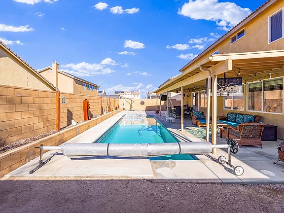 POOL HOME WITH SPA AND BAJA SHELF!!!! You'll feel at home as soon as you experience the open concept design of this appealing 3-bedroom, 2.5-bathroom property (that could easily be 4 bedroom). Beneath a combination of sunlight and stylish fixtures, the neutral palette of the current finishings are a blank canvas for your interior design talents. The efficient gas fireplace imparts a cozy feel to the living room, creating a great spot for reading or a nap (perhaps both in that order). The kitchen, which is roomy enough to accommodate spectator guests, is recently updated, and is a delicious concoction of inspiring counter space and premium appliances. A classic island configuration maximizes workspace and flexibility. The ensuite master bedroom is spacious and luxurious. In addition to the convenience of the private bathroom (separate tub), you will find ample closet space to let your wardrobe breathe. A sitting area constitutes still more versatility. The other 2 quiet bedrooms are located above the ground floor for enhanced privacy. Rear fencing heightens the sense of privacy in the backyard. A driveway with ample accommodation for visiting vehicles leads to an attached three-car garage that is available for its original purpose, or you can get creative by treating it as additional flex space. Savor pleasant weather days from the breezy rear porch. Say yes to the inviting swimming pool that is the social and social centerpiece of the fully fenced backyard. The home is located on a pleasant street lined with sidewalks. This home is your golden goose for a treasure they say money can't buy: more time, thanks to the low-travel commute to Edwards AFB. This charming home is a special Rosamond opportunity. You'll thank yourself for getting your offer in early.