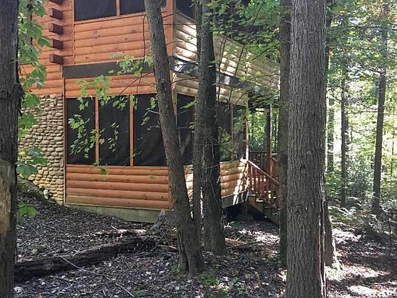 WOW!!! This Awesome and Premier log cabin features four bedrooms, three baths, a theater room with 10 ft. screen, two screened in back decks, gorgeous all wood craftsmanship, stone fireplace, gleaming wood floors, very open floor plan, solid surface counter tops w/stainless appliances, 2 whirlpool tubs, security system, wonderful kids loft with log ladder, and high-end rustic furnishings and decorations. Great Game Room plus bonus room used as a 4th bedroom. This home has a very private yard full of evergreens and Hemlocks. This cabin is TRULY IRRESISTIBLE!!!