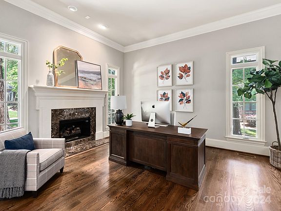 Beautiful custom home in popular Hadley Park community with lovely private backyard and located on a quiet cul-de-sac lot. Great floor plan includes a primary bedroom on main with oversized walk in closet and luxury bath. Main floor also features a private study with gas fireplace and gorgeous Great Room with stacked stone fireplace, custom built ins and coffered ceiling. Kitchen features double ovens (newer), a 5-burner gas cooktop, and a convenient pot filler, plus built in fridge and convenient pantry. Upstairs you will find 3 spacious bedrooms each with a walk in closet and attached private full bath. Second floor also features a large bonus room, loft area plus tons of walk in storage. Outside, enjoy the great carolina weather on the 3 season porch or spacious open terrace. Beautifully landscaped backyard opens to acres of community common area. Roof and copper details replaced in 2021! Move in ready! Zoned for Weddington Schools!