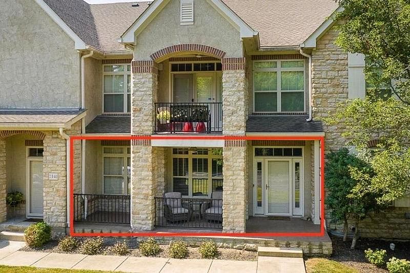 GORGEOUS first floor unit with LOADS OF UPGRADES AND AMENITIES: TWO CAR GARAGE, EXTENDED KITCHEN cabinets into dining area, CUSTOM CLOSETS in both bedrooms, beautiful wood accent wall in living room, WOOD FLOORS in living, dining, kitchen and both bedrooms, EXTENDED front porch, CRAWL SPACE STORAGE under owners bedroom and a short distance to the NEW QUARRY TRAILS METRO PARK! This 2-bedroom is a little larger than most. Kitchen has a 2-tiered island with granite counters, tile backsplash, under cabinet lights, high-end stainless appliances. There is a SECRET CRAWL SPACE under the owner's closet that gives you additional storage. The owner's bath offers two sinks, separate wlak-in shower and large soaking tub. A/C Condenser replaced in 2020. Complex includes a 24-hour fitness center