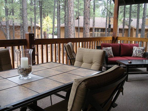 Popular development, close to hiking, golfing, skiing. Beautifully maintained upper unit with SS appliances, custom built-ins including, wine rack, 14 x 26 porch that looks out to easement, immaculate and move in ready, being sold partially furnished. Owner/agent is licensed real Estate Agent in the State of Arizona.
