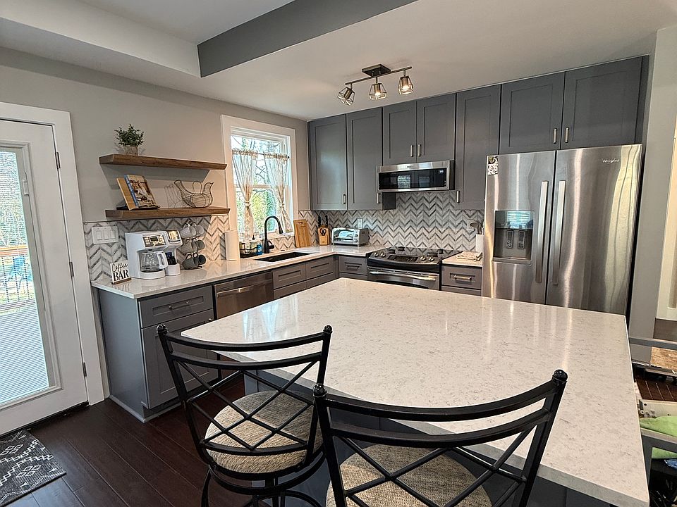Natural lightBeautiful kitchenLarge attached deckPrivate yardLarge windowsQuartz countertopsInviting open floor plan