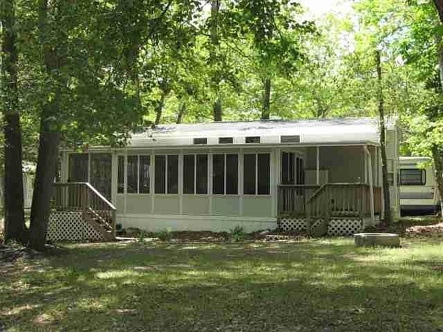 Great vacation home in beautiful family resort. Nestled in the back of the park overlooking fishing lake. Best view in the park. Close to all beaches. Two lakes, one for fishing, one for swimming and a pool too! Minature golf, club house, arcade. Well maintained unit boasts a huge florida room with skylights. Vaulted ceilings in trailer with two bedrooms plus loft for the kids. Fully furnished and equipped and it all stays. Did I mention the great view? Gated community, great for a big family.