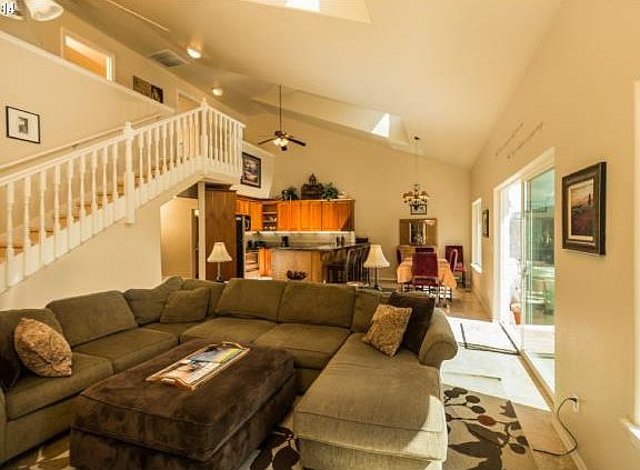 Fore! Situated on the Seaside Golf Course with views of the mountains and only a skip to the beach. Excellent vacation rental history on file. Main level master suite, expansive deck with a hot tub and plenty of room to lounge and BBQ. The front patio adds another outdoor entertaining space and is a perfect spot to sip your morning coffee. Impressive kitchen with granite and cherry cabinets and a bar perfect for additional seating.