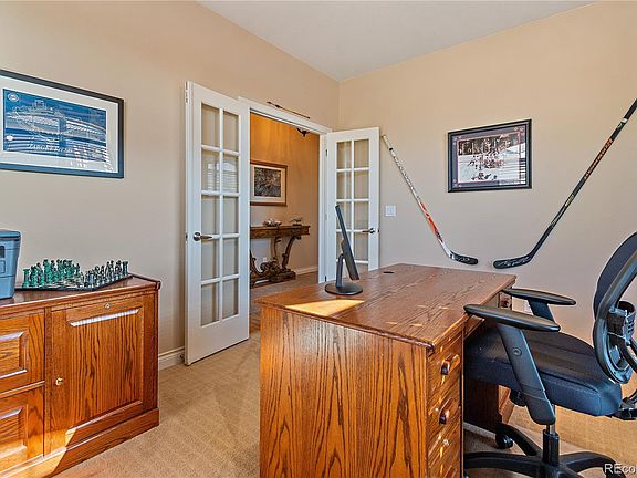 Solterra patio home new to the Market! Remington 900 series with Main Floor Master Suite and Main Floor Jr Suite. Private Main Floor office with French doors and Built ins. Chef's Kitchen with Massive kitchen Island with sink and seating. Gas cook top, double ovens, soft close cabinets and drawers, tile backsplash-plenty of kitchen counter space. Large pantry and second pocket office. Huge Vaulted Bright Great Room with fireplace and mantel. Basement features large recreation/entertainment area with wet bar, refrigerator and dishwasher. Basement also includes 2 bedrooms, 3/4 bath and plenty of storage. Professionally finished landscaping with exterior lighting. Covered patio with back yard and additional patio. Home backs to greenbelt with walking paths. Solterra Colorado is located next to the foothills with easy access to the mountains Via I-70 or 285 to enjoy everything Colorado has to offer.