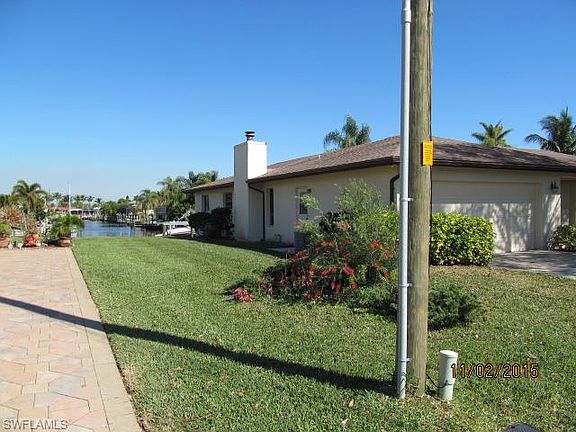 Direct gulf access on the Mackenzie canal. Only 780 feet to the river. This home sits on a 95 ft. wide large hammerhead lot on a cul-de-sac & looks directly across & down an intersecting canal. Spacious dock with picnic deck & a 24 1000lb. electric lift. Bring your large boat. Water available at the dock. This property has three good size bedrooms, master & two guests rooms, formal living & dining rooms, dinette area and family room with a wood burning fireplace and cathedral ceiling. How about a private office off the family room.The home was recently refurbished throughout with new carpet and laminate flooring. All new kitchen appliances, garbage disposal & all counter tops including the pass through to the lanai are also new. New vanities in both baths. Also freshly painted throughout & there are window treatments on all windows. The lanai floor was just painted & the gravel area in the lanai is set up for a portable spa. This property clearly meets all the needs & location for a serious boater. Only 20 minutes to the gulf. Enjoy paradise with an affordable waterfront investment. Conveniently located to everything in Cape Coral & just across the river from Fort Myers. See it now