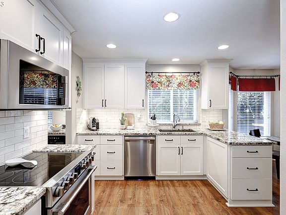 Beautiful home in great close-in location on private dead end Street. Tons of updates, gorgeous remod kitchen w/ granite counters, SS appliances, wine cooler, nook & pantry, lux vinyl flrs, carpet, paint, roof. Builtin bookcases surround fireplace in living room & builtin desk in family room. New front & back trex deck w aluminum railing. Backyard has covered deck w speakers, perfect for entertaining! Newer furnace, AC, water heater, gutters. Easy access to I5, shopping, parks, downtown & more! [Home Energy Score = 5. HES Report at https://rpt.greenbuildingregistry.com/hes/OR10206710]