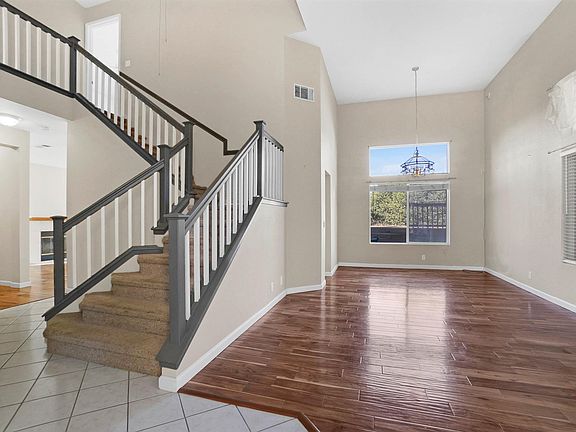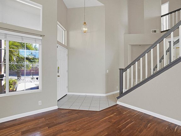Nestled in this secluded neighborhood, this stunning 4 bedroom, 2.5 bathroom home is the epitome of comfort and style. The curb appeal is a true 10 with the newer exterior paint, low maintenance landscaping and the extended driveway that can easily fit up to 5 vehicles. As soon as you step foot in the home, you are welcomed by soaring high ceilings and an abundance of natural light, creating a warm and inviting atmosphere. The first level showcases partial fresh interior paint and newer engineered hardwood flooring that seamlessly flow throughout home. The updated kitchen has sleek quartz countertops, ample cabinet space and stainless steel appliances. The home's thoughtful design extends to the large garage, which includes a versatile bonus room. Upstairs, the primary suite is a true sanctuary, with fresh paint, vaulted ceilings, oversized closet and picturesque views. The other 3 bedrooms have also been freshly painted. The backyard is an entertainers paradise, featuring a huge awning for shaded gatherings, pristine artificial turf, and a gated side yard that can be used as a dog run. Additionally, the side yard includes convenient RV or boat parking. Don't miss the opportunity to make this exceptional property your forever home!