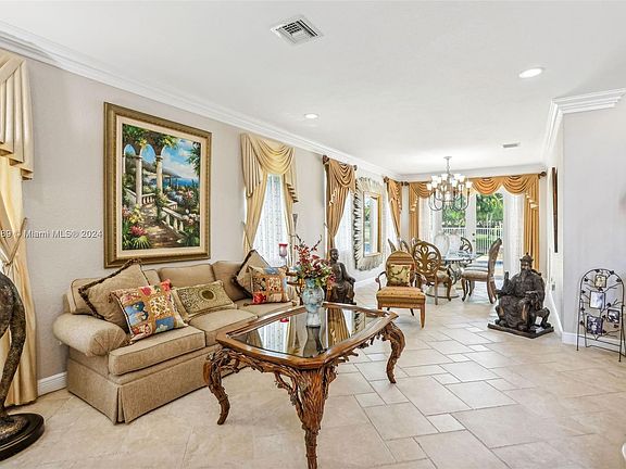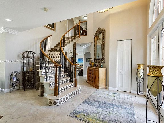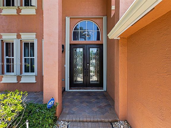 Introducing this Stunning Two-Story Residence located on a cul-de-sac and waterfront in the sought after prestigious community of Olympia. One of the many amenities is the Gourmet Kitchen. Featuring Custom Cabinets, Exotic Quartz Counters with large Island. Stainless Bosch Appliances, Induction Stove, Monogram French Door double Wall Oven and walk-in Pantry. Tumbled Travertine throughout the home. Bronze Faucets throughout. Central Vac. Marble Staircase with twisted Wrought Iron Balusters. A grand Master Suite that includes a sitting area and or office. His and Her bathrooms with spacious walk-in Closet. In addition, your own Private Balcony overlooking the custom 8-foot-deep Saltwater Pool and beautiful Lake.