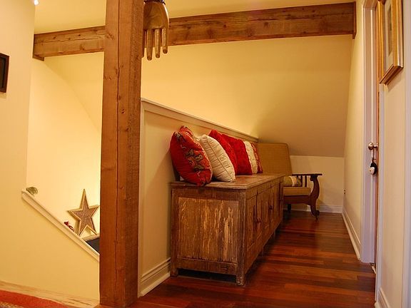 Lovely historic barn that was newly-renovated into a home (2004). Beautiful exposed beams and quality craftsmanship —including a stone fireplace with gas log, Brazilian walnut hardwoods.