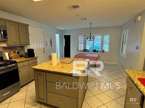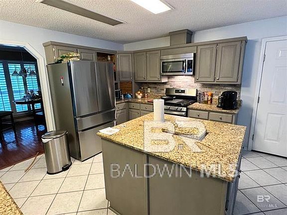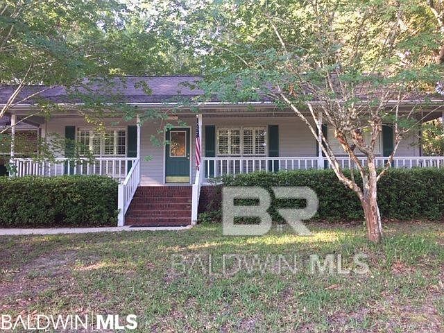Location is not a subdivision, country feel No HOA, wooded lots on both sides, almost .5 acre lot with trees. This three-bedroom, two-bath split floor plan is loaded with features such as a gas oven/cooktop, central vacuum system, Oak hardwood flooring in the Living room, ceramic tile in the kitchen and baths and an inline water heater with an electric water heater to supplement the guest bedrooms if needed. The kitchen has beveled granite counters and island tops. There are Ponderosa blinds throughout. The large master ensuite has a tub and a separate shower with two large closets. An inset back porch opens up to a large deck with a railing. A custom-built 16' X 20' shop with a roll-up door and attached dog kennel. A separate well pump is for the irrigation system. NO HOA, No restrictions, and the location make this property stand out. It is 5 minutes to the OWA resort and 10 minutes or less to Tanger outlets and the great restaurants of Foley. Gulf Shores and Orange Beach are about 20 minutes away. Downtown Pensacola, with outstanding restaurants, is about a 30-minute drive. All viable information is to be verified by the buyer or buyer's agent. Seller is a licensed Real Estate agent in Baldwin County and Alabama. Buyer to verify all information during due diligence. A 2.5% loan assumption option can be discussed