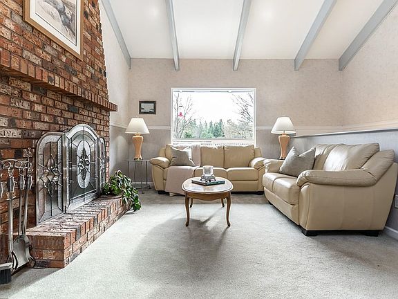 This gorgeous family home sits on a massive 18,731 sqft lot, featuring 4 beds & 3 baths, backing on to a quiet street & serene greenbelt! Your main floor features a floor to ceiling brick fireplace in the living room and sliding glass doors from the dining room leading to a gorgeous private patio space, perfect for entertaining! STUNNING Chef's kitchen w/beautiful bright cabinetry, quartz counters & modern flooring. Below you will find a large rec room with sliding doors leading out to a second patio area, as well as your oversized Master Bedroom on this floor! Upstairs features 3 more beds & 2 baths. Great curb appeal, perfect location just minutes to schools, shopping, walking trails, transportation and recreation! You will love this area. This home is sure to impress!