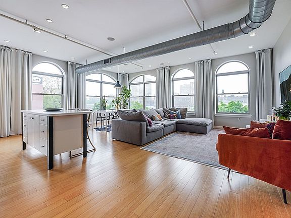 Step inside this gorgeous 2bed/2 bath sun drenched corner unit condo in the highly sought after Schroeder Lofts! This unit boasts impressive architectural details which includes 10 ft-high ceilings, an expansive open living/dining plan, and hardwood floors throughout. Enjoy the sunrise and sunset with floor-to-ceiling windows that include custom window treatments. The modern kitchen features all stainless steel appliances, sleek subway tile backsplash, open cabinetry and an island with a breakfast bar. Bonus feature, a reverse osmosis water system recently installed. Bedrooms have customized closets, Hunter Douglas noise and light blocking motorized shades, and both include an en-suite bath. Schroeder Lofts offers a beautifully landscaped rooftop deck garden with gas grills and NYC views, plus a part-time doorman. Parking available in the building for an additional fee. This impeccably maintained condominium is ideally located a block from historic Hamilton Park. Close proximity to PATH or bus to NYC, cafes, restaurants, schools and shops.
