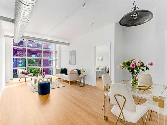 The perfect layout - South-facing, split 2 BR with high ceilings and floor to ceiling windows in the oversized living room. This fantastic home has endless design possibilities from urban chic, to farmhouse, to mid-century modern. Both BR's as well as each Bath have an abundance of space. The radiant-heated floors in the spa-like bathrooms add to the warmth of this comfortable home. Schroeder Lofts is quiet, boutique-style converted warehouse building with an abundance of character. The common roofdeck offers a charming reprieve from city life. Just a block from beautiful Hamilton Park, and surrounded by great restaurants and shops, this is one you truly should see!