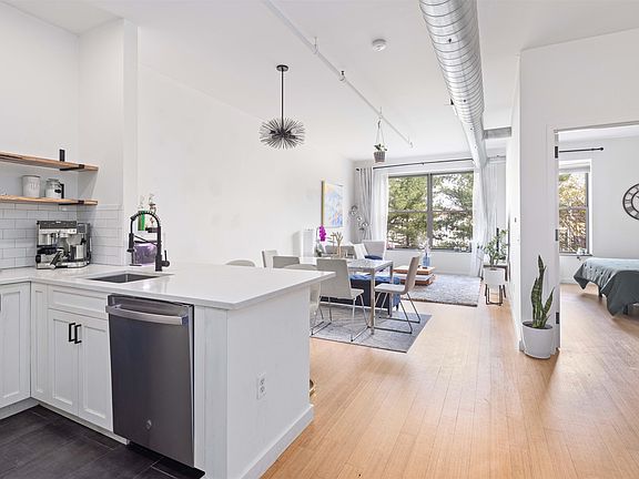 Situated in the highly sought after Schroeder Lofts in the heart of the Hamilton Park neighborhood, this spacious one bedroom home includes a bonus alcove, perfect for a home office. It features soaring 10 foot ceilings, expansive windows with Manhattan views, and a newly renovated kitchen with quartz countertops and stainless steel appliances. Additional highlights include hardwood floors, a large spa-like bathroom clad in gray limestone with radiant heated floors, central air conditioning, and an in-unit washer and dryer.