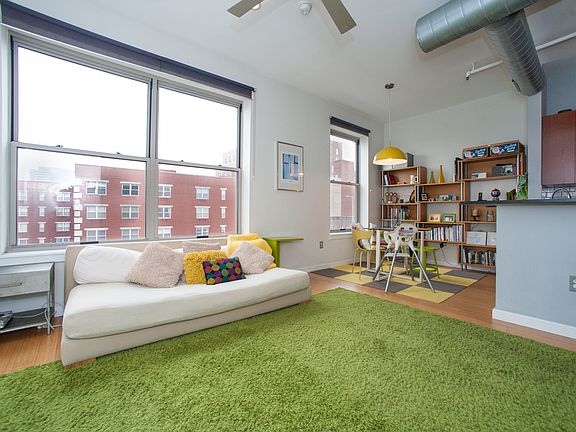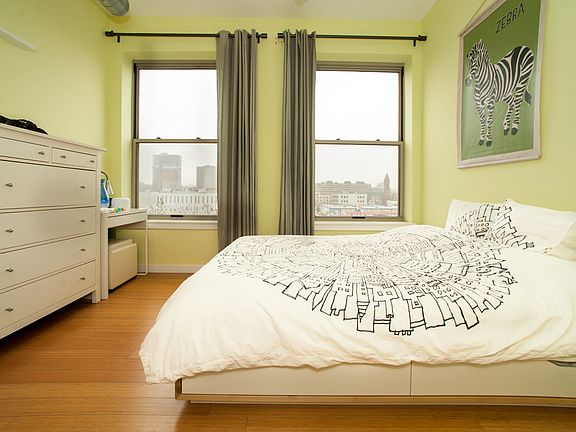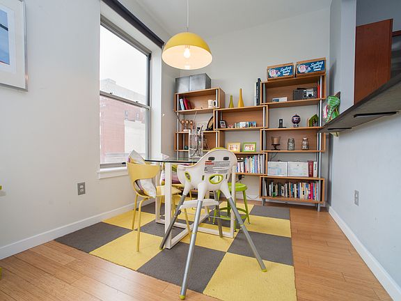 Oversized Corner One Bedroom with Views Boasting six large windows to East & North with spectacular views of Manhattan’s skyline, this spacious loft residence offers a 28ft living room with corner exposures, separate dining area and stunningly beautiful windows. There is a walk-in closet in the bedroom, and the spa-like bathroom features natural stone tiles, marble vanity and deep soaking tub. The apartment further boasts central AC & heat, washer & dryer, 10ft ceilings, bamboo floors and chef’s kitchen with granite countertops. Due to the unusual length of the living room and flexible lay-out, it is currently configured as Two bedrooms, however, it will be turned back to the original floor plan. The highly soughtafter Schroeder Lofts in the heart of the historic Hamilton Park neighborhood offers part- time concierge, on-site parking available on separate charge and beautifully landscaped common roof terrace with BBQ and outdoor shower. Steps to Hamilton Park, PATH, restaurants, schools and shopping.