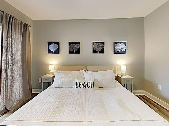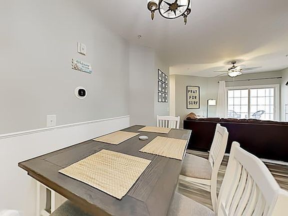 Located in the Topsail Landing community, this 2BR condo features a screened porch, balcony, and an updated interior with three smart TVs. On-site amenities include a swimming pool and gym. Walk to restaurants or drive 5 minutes to the beach! Sleeps 4. Nestled in the Topsail Landing Condominiums, this 2BR/2BA rental offers an updated interior with new appliances and three smart TVs. Relax on the private balcony or the screened porch. Take advantage of on-site amenities, including a pool and clubhouse. Walk to multiple restaurants. Spend blissful days on the beach, located just a 5-minute drive from home! Unwind on the sectional and watch a new movie on the smart TV in the living area. The pristine kitchen is equipped with a full suite of appliances, granite countertops, and a kitchen island. When meals are ready, the table accommodates six. The primary bedroom has a king bed, deck access, a smart TV, and a private balcony. The en-suite bathroom is configured with a tub/shower combination. The second bedroom is appointed with a queen bed and a smart TV, while an adjacent bathroom has a tub/shower combination. Enjoy morning coffee on the screened porch. Topsail Landing Condominiums community amenities include: - Large clubhouse - Gym - Swimming pool (unheated, open May through September) EXTRA PERKS & MORE DETAILS -in-unit washer/dryer are provided. -unassigned parking is available for two cars in the parking lot. This unit is on the third floor. Elevators are available. LOCATION This wonderfully located condo is within walking distance of a variety of delicious eateries. For sunny days on the shoreline, the pristine beaches of Surf City are a 5-minute drive away. Owner responsible for electricity and internet. Dogs are ok with owner approval and non refundable $250 pet fee. Shorter lease options available.