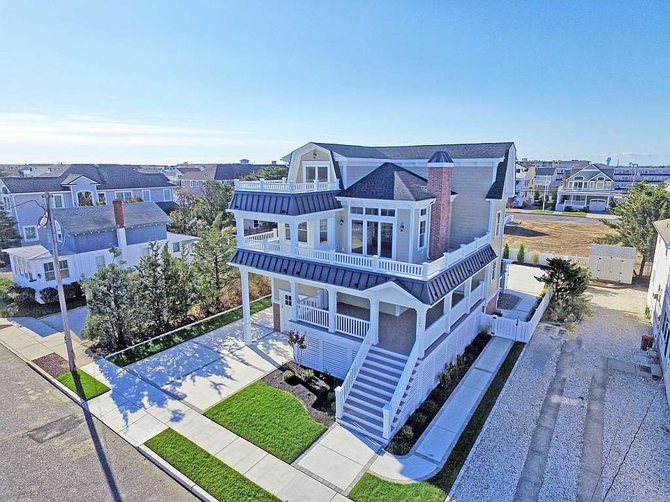 Beautiful brand new, three story, upside down style home located in the much sought after south end of Avalon. Enjoy ocean and bay views as well as the convenience of being 1.5 blocks to the fabulous beach. The expansive 6 bedroom, 6.5 bath design is offered at the lowest price for a brand new home in south Avalon. The south side of the street location allows plenty of sunshine all day on the heated, in-ground swimming pool. Special features include a great kitchen with large center island and stainless steel appliances, stone tops throughout, first floor family room with wet bar overlooking the pool, 4-stop elevator, hardwood floors throughout, three levels of decks, attached garage and beautiful landscaping. The home is complete and ready for your immediate enjoyment.