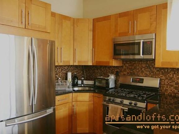 Sunny apartment for rent in near the Graham Avenue "L" train stop. As you enter the apartment, you will notice the floor to ceiling windows that brings in tons of natural light. To your left you will see a modern kitchen with stainless steel appliances, dishwasher and microwave. To your right, there's a closet with a large capacity washer/dryer already installed for your convenience. The living room has a feeling of openness and comfort. Bedroom is also sunny with ample closet space. Bathroom features a deep soaking tub with a glass shower door. This apartment is available furnished for $2,675/month. $2,575/month unfurnished.