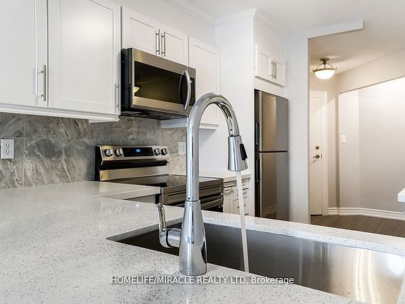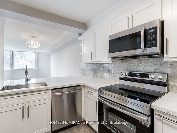 Location! Location! Location! Absolutely Stunning 2 Bedroom, Completely Renovated Condo. Open Concept, Beautiful Laminate Floor Throughout. Wood Custom Kitchen Cabinatery With Quartz Countertop. S/S Appliances, Brand New Washroom With High End Fixtures. Large Balcony . View Of Humber River. Ensuite Laundry. All Utilities Included In The Maintenance Fees. Easy Access To Ttc, 401, 400,427. Near To School, Shopping Worship. Don't Miss It! Must See!!