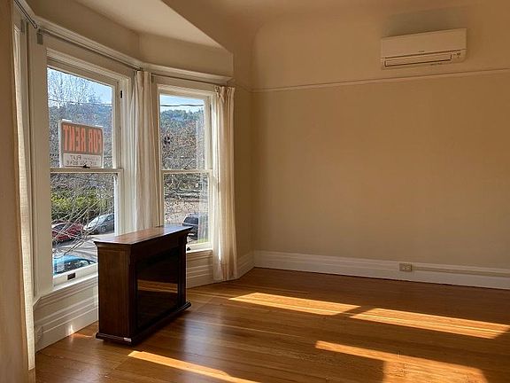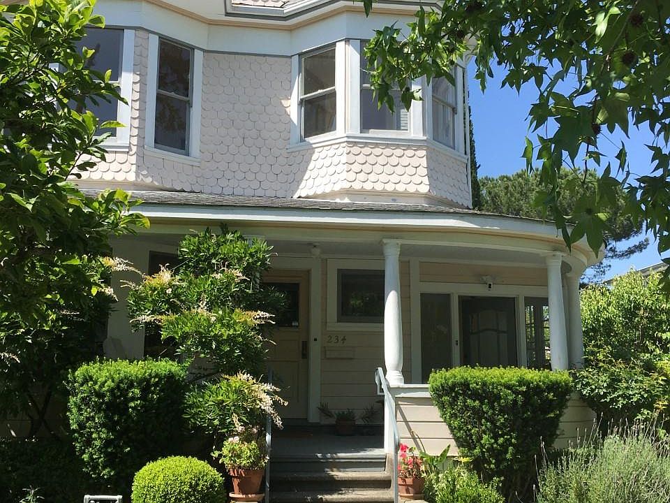 Extensive updating with low power Gas & Electric features will lower energy costs while you enjoy spacious living in great neighborhood! This lovely Victorian flat, on tree lined street, has large entry room off the front porch leading to carpeted stairs & hallway; South facing Livingroom has many windows, finished wood floor, period chandeliers & cost-effective heating & air conditioning; 2 bedrooms with good light & baseboard heaters; large bathroom with claw-foot tub & shower, large mirror, marble vanity, & chandelier; efficient kitchen with granite counter, low gas & electric using gas range & medium size refrigerator; large kitchen extension with cutting board work surface, shelving, baseboard heater, comfortable space for table & chairs. Friendly neighborhood is close to 101 & 580, known for dog walking & hiking trails, easy walk to downtown cafes, stores, markets & Transportation Center. Use of landscaped back yard and laundry included. One year lease; water and garbage included; tenant pays own gas & electric (with shared solar system). Available March 1.