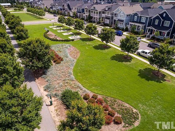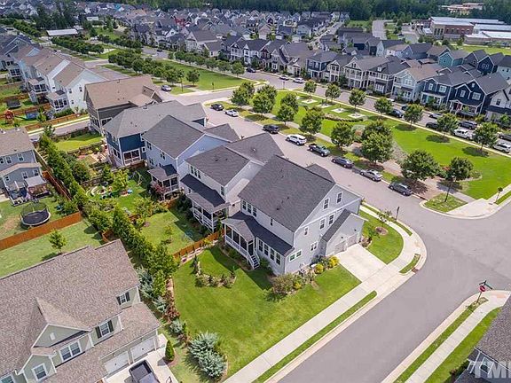 BACK ON MARKET - Buyers Job Changed & No Longer Moving Here - STUNNING CRAFTSMAN style home located on a gorgeous corner lot ON the 5-ACRE GREAT MEADOWS PARK! *Versatile OPEN layout w/ 10' FT ceilings *Kitchen boasts quartz counters, center island, oversized custom cabinets lighted with glass doors *HARDWOOD Floors on 1st & 2nd & a FINISHED 3rd FLR w/ 5TH BR/BONUS/OFFICE and/or PLAY AREA & FULL BATH *Abundance of NATURAL LIGHT *Huge owners suite including sitting area overlooking private backyard & bathroom with large walk-in dual-head shower *LOFT has custom built-in bookshelves & cabinets with wainscoting *Wood blinds throughout *Beautiful oversized screened porch w/ double-sided floor to ceiling stone fireplace & TREX decking *Wired for surround, home network & security systems *WALK ZONE to Woods Charter/Pollard/Chatham Grove Elementary & Willow Oak schools, parks & trail heads *Oversized lot with side-entry garage & extra parking *Amazing amenities include 2 swimming pools, waterslides, splashpad, tennis, pickleball, clubhouse, gym, sports courts, walking/biking trails & more!