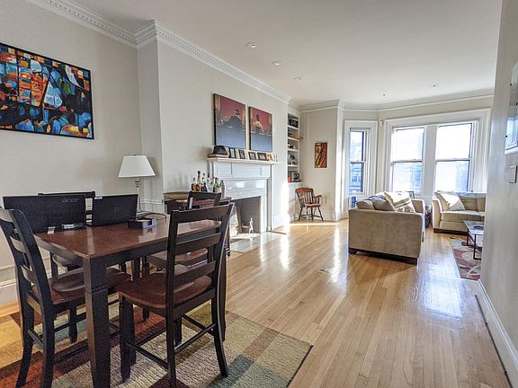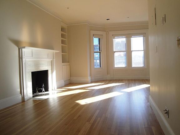 Spectacular Back Bay location: Sun-filled 1 bedroom at the front corner of building looking south towards Dartmouth Street for City views from the NEW double pane large bay window. Includes 1 FULL PARKING SPACE behind the building. This elegant unit features central air conditioning and hardwood floors throughout with a naturally-lit large living/dining room with a decorative fireplace, built-ins and high ceilings. The open floor plan offers bonus spaces and the flexibility of use for different furniture layouts - see the 2 floor plan options. There is plenty of space for a generous work-from-home area. Bedroom fits a Queen size bed and has 3 closets plus a ceiling fan. Building has an elevator, common roof deck with water views of the Charles River and City views. Common laundry is in the building. No animals & no smoking, please. Located at the pedestrian bridge to Esplanade and Bike Path across Storrow Drive for open outdoor space and 1 block from the Commonwealth Mall. Rent includes 1 parking space, heat, hot water, water & sewer, landscaping, snow removal, elevator, laundry in bldg, common roof deck. Tenant to pay full Broker Fee equal to one (1) month's rent.