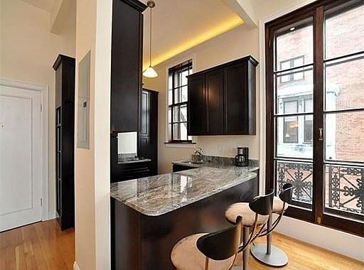 Recently updated corner junior one bedroom apartment with newer kitchen, appliances and bathroom with a bonus office alcove space. Unobstructed, panoramic, western views of the Charles River with a private deck off the living room space facing the Charles River. Enjoy very high ceiling height, hardwood flooring throughout the apartment and central air conditioning. Steam heat is included in the rent. Beautiful common roof deck with new outdoor furniture. Elevator building with common laundry on first floor off the lobby