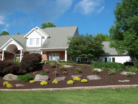 Amazing Architectural Details Grace this Stunning Brick Front Home Strategically Located to Exact Breathtaking Views While Offering Amazing Curb Appeal! This Custom Built Home Has Beautiful Winding Drive on Over 9.8 Acres Ending at a Fully Landscaped Lot with Mature Shrubs & Amazing Blooming Flowers with Large Flat Yard! Follow the Brick Paver Sidewalk to the Grand Entry and Large Porch to Take in the Views! Modern Open Floorplan from Foyer to Soaring Cathedral Ceiling Family Room to Kitchen w/ Center Island! Perfect to Relaxing with Friends & Family! Full Glass Conservatory Perfect for Enjoying the Sun & Reading a Book! Large First Floor Master Bedroom w/ Master Bath Suite Including Large Soaking Tub! Upstairs Offers Additional Bedrooms & Bath! Bonus Finished Office in the Basement!