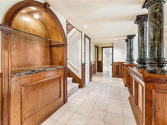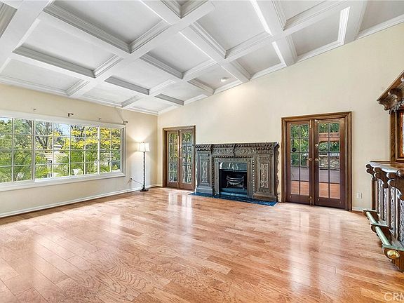 Private, prestigious Bell Canyon custom estate, built in 1978 in the Wallace Neff "California style," showcases elements of Spanish and Mediterranean design. It boasts high ceilings and a flow that's ideal for entertaining. The woodwork and finished carpentry are masterfully crafted with architectural moldings and wood carvings throughout. The kitchen features US Range oven, restaurant-level appliances, leading to a covered outdoor patio with a gas fireplace and outdoor TV. The backyard has a large deck, pool, jacuzzi, water fountain, and birds-eye view gazebo, with Chef's full prep outdoor kitchen equipped with a top-of-the-line Viking built-in grill and accessories. The first-floor bedroom full suite includes, updated bathroom, a sauna and private entry access. Stunning views from the primary bedroom has a fireplace, outdoor balcony, and his/hers cedar-lined walk-in closets. The home includes a walk-in pantry with a wine rack, laundry area, and wired sound system plus outdoor security cameras throughout. First time ever on the market! Bonus features include: stained and leaded glass windows, green veined marble cylindrical columns imported from Italy, 17th-century dark oak fireplace imported from France and 2 unattached storage sheds. Overall, this luxurious estate is perfect for family and friends building memories and offers total privacy and a sprawling outdoor entertaining space. See you at this grand entrance home which features a unique and notable custom-painted canvas on the ceiling foyer entrance by R. Diaz in 1984, who restored the San Fernando Mission.