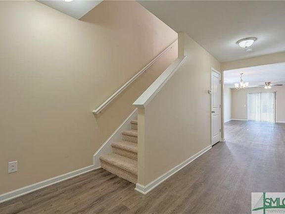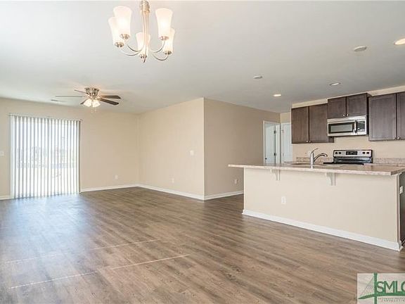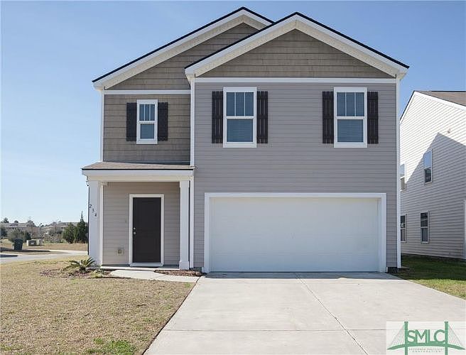 Nestled in a small commuity just mintues from Ft Stewart this spacious home, holding 2300 square feet , features a large open concept living area, large breakfast island, a walk in pantry and a full bath and bedroom on the main level. 2nd level features masterbedroom, huge walk in closet , masterbath with large shower and double vanities, including 3 bedrooms, full bath and laundry room. Community pool to enjoy on evening weekends and small ponds to fish in!