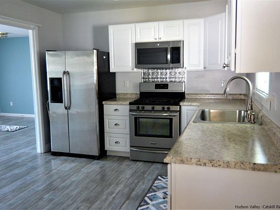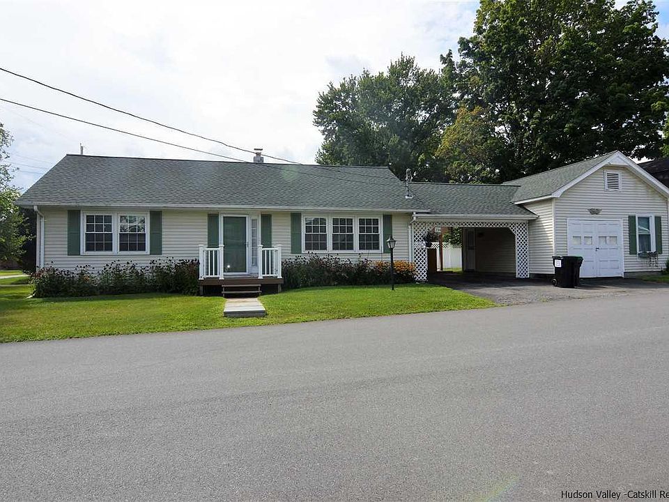 Delightful ranch in the charming hamlet of Port Ewen. Newly renovated & enjoy the important benefits of new flooring, fresh paint, new windows (2016), new roof (2017), new HVAC system, new hot water heater (2019) and refreshed yard with raised beds great for flowers or vegetables. The bathroom is completely new and includes a step-in shower and a new first floor washer and dryer. The garage is detached but connected to the house by a carport and covered walkway. It has a new, separate electric panel and the potential to be additional living space as an office or studio. Great location with easy walking, biking, access to the Town Park and local services and the Hudson River. 20 minutes to Metro North. 5 minutes to Downtown Kingston with restaurants, shops, festivals and the Rondout Creek. Wonderful opportunity!