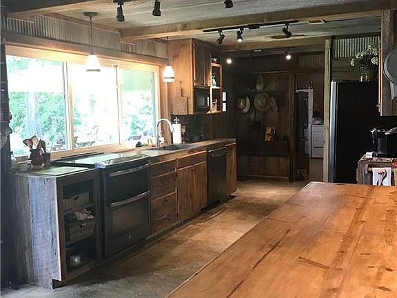 What a view! You will love the private drive that takes you to this home located on Wallace Lake.This three bedroom/two bath home has a rustic newly remodeled kitchen and dining room. The large den and space of the area is great for hosting gatherings. The wood used to remodel was sought out from places of old. Out the kitchen window is a view of the lake that will make you forget the kitchen is work. The patio out back is great for a day to grill while others fish or swim from the pier. The house has a 3 year old septic tank, 3 year old insulated windows .On the property you will find a 'cabin' that could be used for company or maybe even a weekend rental, a barn with a fenced in lot for your animals and a storage shed. Also there is an R.V. hookup! This home did not flood in '73 .