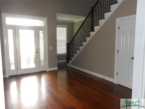 Truly one of a kind home. Unique floor plan Plans were drawn by seller and executed by builder. Open concept with thought to family & friends gathering. Many upgrades include Brazilian Tiger Wood Flooring throughout main floor, built-in bookcases, loads of kitchen cabinets plus free standing island, granite counter tops, stainless appliances, master bath offers soaking tub and walk-in shower. The dining room is very large and is open to the kitchen. Could possibly be used as a den or playroom. Plenty of space in kitchen for large table and chairs plus there is a breakfast bar for casual dining. There are two Central H/A Units for upstairs and down. This home is within walking distance to elementary and middle schools. Only short distance to Rincon and Savannah for shopping or other entertainment .About 50 minutes to Tybee Island and Beach. Come and see what this lovely home has to offer.