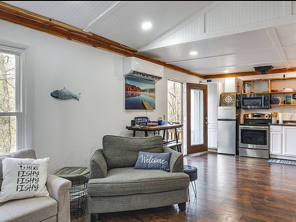 Fully furnished, 2-bedroom, 1-bath cabin in Smithville, TN. With its cozy interior, outdoor entertainment space, and close proximity to hiking, boating and kayaking, this space is perfect for outdoor enthusiasts or anyone looking for a peaceful escape while still being 10 minutes from downtown Smithville and shopping. The Property Fully Furnished Bedroom 1: King Bed | Bedroom 2: Twin Bunk Bed | Living Room: Full Sleeper Sofa LIVING: Flat-screen TVs in the bedrooms and living room, dining table, walk-in shower, board games, books, Outdoor Dining Area(Seating for four) KITCHEN: Stove/oven, refrigerator, cooking basics, dishware/flatware, microwave APPLIANCES: Washer & Dryer, Stove/Oven, refrigerator, Tankless Water heater, microwave GENERAL: Fast cable internet available, mini-split AC/Heating, linens/towels ACCESSIBILITY: Single-story cabin, exterior staircase required to enter PARKING: Carport (2 vehicles) The renter is responsible for all utilities (Gas, Water, Electric). No Smoking within the house. The lease term is for one year.